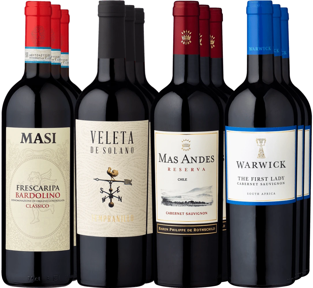 Mit seinem leichten Spiel aus zartem Kirschduft, Sanftheit und herrlicher Frische verzückt der Frescaripa Bardolino Classico aus dem italienischen Traditionshaus Masi seine Umgebung. Aus der spanischen Top-Weinregion La Mancha stammt der Veleta de Solano Tempranillo, der mit seinem fruchtig-würziges Duftportfolio und hervorragend eingebundenen Gerbstoffen auf keinen Fall im Weinregal eines Genießers fehlen darf. Im kraftvollen Mas Andes Reserva Cabernet Sauvignon hat Baron Philippe de Rotschild auf köstliche Weise das chilenische Terroir mit dem Geschmack großer Bordeaux-Traditionen vermählt – die Rotschilds wissen einfach wie es geht! Seiner Mutter widmet der Kap-Winzer Mike Ratcliffe den samtig-weichen Warwick Estate »The First Lady« Cabernet Sauvignon, der mit seinem fülligen Körper und süß-fruchtigem Bukett brilliert.