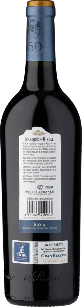 Nach dem Vorbild großer Bordeaux-Weingüter, errichtete Don Camilo Hurtado de Amézaga, Marqués de Riscal, 1860 eines der traditionsreichsten Rioja-Weingüter der heutigen Zeit. Tempranillo, die wohl wichtigste Rotwein-Sorte Spaniens und Hauptsorte des Riojas, gehört natürlich auch zu dem Rebsorten-Portfolio des Weinguts. Die kalkhaltigen Böden im Ebrotal und die idealen Temperaturbedingungen, lassen die Reben im Rioja ausgezeichnet wachsen.