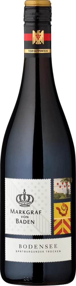 Dieser trockene Spätburgunder ist ein Gutswein vom Bodensee vom Weingut Markgraf von Baden, ein fruchtiges Erlebnis. Im Glas überzeugt er mit einem saftigen Kirschrot und auch geschmacklich präsentieren sich rote Früchte am Gaumen mit feinen Noten von Erdbeeren, Johannisbeeren und Kirschen. Samtige Tannine und eine sanfte Säure umschmeicheln den Gaumen weiterhin und enden in einem fruchtigen Nachhall.