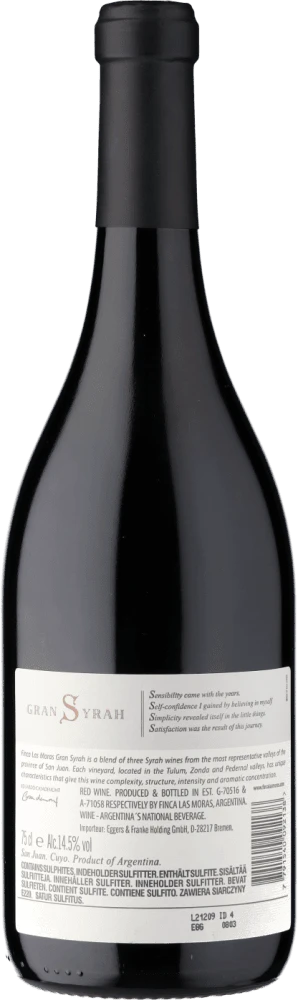 Handlese, Selektion der Trauben und der Ausbau im Edelstahltank sind die Bedingungen des Winzerteams, um das Aromenspektrum zu bewahren. Eine 18-monatige Reifung in neuen Fässern fügt dem Finca Las Moras Gran Syrah schließlich weitere wohltuende Noten hinzu. Ein typischer Syrah eben. Oder doch nicht? An diesem Wein erscheint alles eine Nummer fülliger, intensiver, größer. Ergo: ein Gran Syrah!