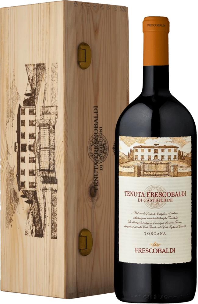 Die Magnumflasche in der stilvollen Holzkiste präsentiert den Tenuta Frescobaldi di Castiglioni in seiner ganzen Pracht und verleiht ihm einen Hauch von Exklusivität. Diese Flaschengröße eignet sich perfekt für besondere Anlässe und gibt Ihnen die Möglichkeit, diesen außergewöhnlichen Wein mit Ihren Liebsten zu teilen.