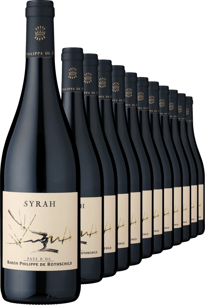 Bis ins 18. Jahrhundert reichen die Wurzeln der Weinbau- und Bankiersfamilie Rothschild zurück. Ihre legendären Bordeaux-Weine wie den Château Mouton Rothschild basieren dabei traditionellerweise auf Cuvées klassischer Bordelaiser Rebsorten. 1995 jedoch beschloss La Baronne Philippine de Rothschild auch reinsortige Weine auszubauen. Die idealen Bedingungen dafür fand sie in den wunderschönen Weingärten des Languedoc-Roussillon. Aus dem Vorhaben entstanden charaktervolle und für die jeweilige Rebsorte sehr typische Tropfen mit beeindruckenden Preis-/Genussverhältnis. Einer der begehrtesten unter ihnen ist der Baron Philippe de Rothschild Syrah.