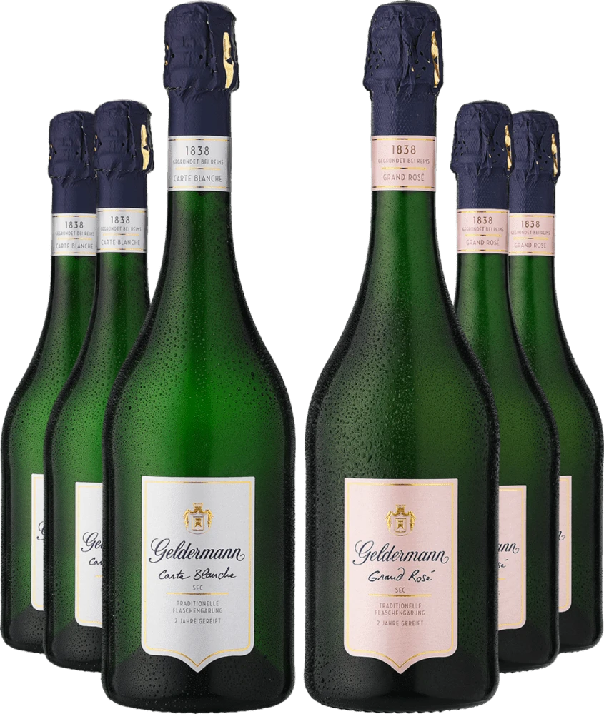 Geldermann-Fans aufgepasst: Zwei erstklassige Prickler in je sechsfacher Ausführung sichern Sie sich jetzt mit unserem gemischten Doppelpaket. Und einen satten Preisnachlass gleich noch obendrauf!