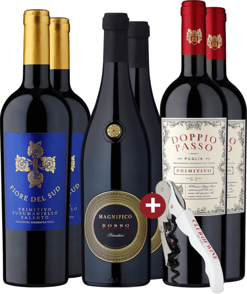 Begleiten Sie Ihre Grillgerichte jederzeit passend mit diesen Primitivo-Weinen sichern Sie sich das hochklassige 6er-Probierpaket zum Top-Preis. Als kleines Extra erhalten Sie ein praktisches Kellnermesser im Wert von 7,95€ direkt gratis mit dazu!